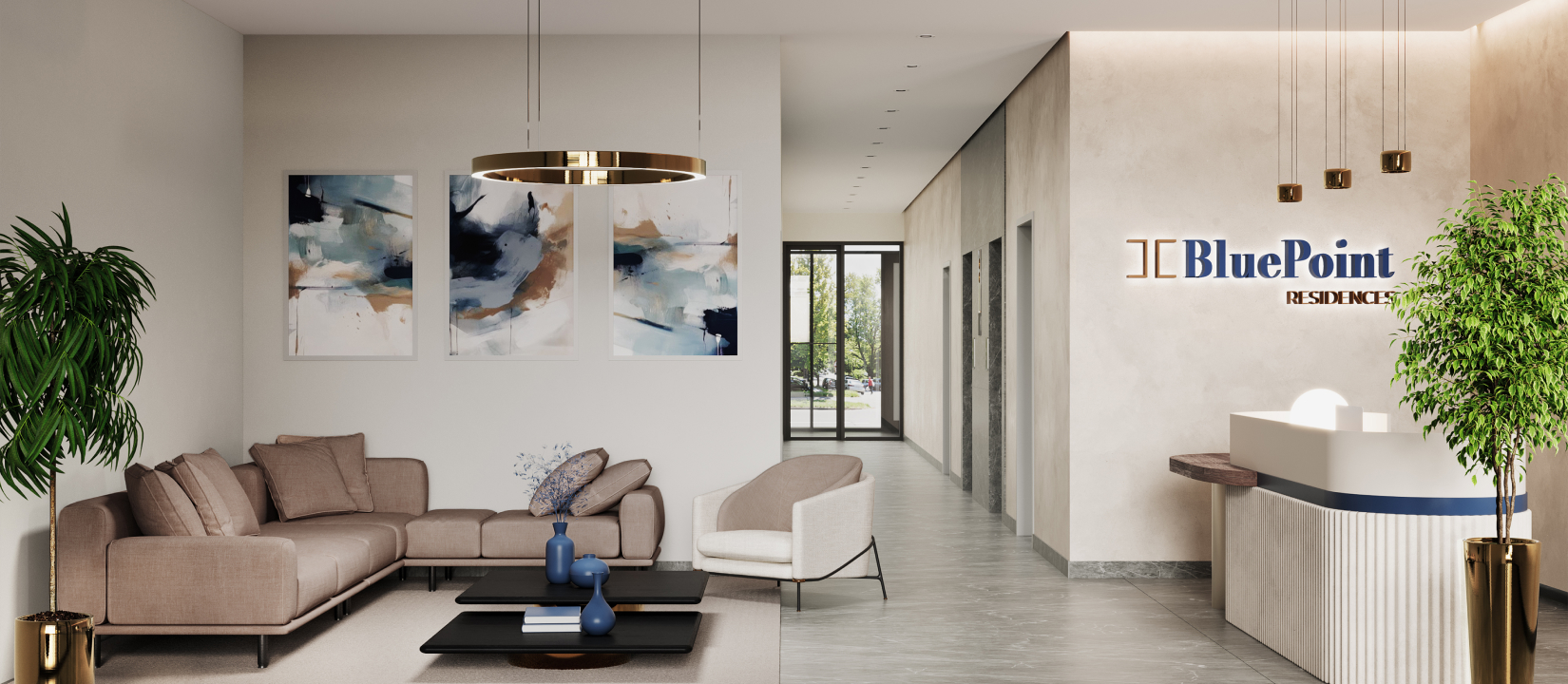 BluePoint Residences ima jedinstven dizajn koji kombinuje savremene materijale i oblike. Njegova arhitektura pažljivo balansira između punih i praznih površina, stvarajući skladan i privlačan izgled. Ovaj pristup omogućava da se objekat vizuelno ističe, a istovremeno izgleda funkcionalno.